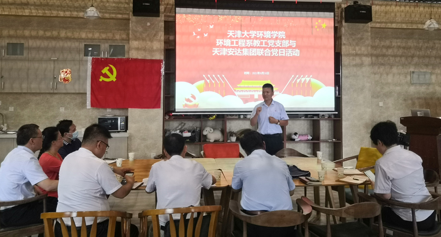 为深入学习贯彻习近平新时代中国特色社会主义思想和“七一”重要讲话精神,进一步深化党史学习教育效果,切实增强基层党组织创造力、凝聚力、战斗力,发挥人才培养与服务社会使命担当,推进基层党建和主责主业同频共振、深度融合。8月30日下午,XK(中国)一站式服务平台集团党委与天津大学环境学院环境工程系教工党支部开展联合党日活动暨科研技术交流会。XK(中国)一站式服务平台集团党委书记董事长助理王俊鹏、党委委员郑宝彦,分公司鸿达精工总经理朱德江、副总经理庄儒国及集团科室领导一行7人,与天津大学环境学院教授王灿、季静、副教授彭森、宋春风等教职工共同出席本次活动。