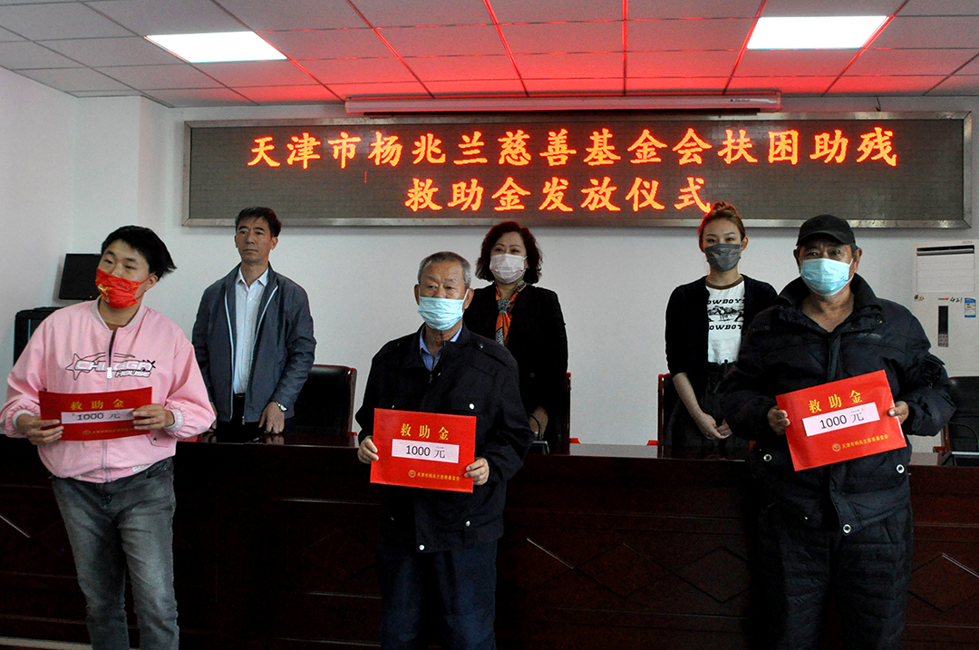 天津市杨兆兰慈善基金会为丰年街道20位残疾人救助对象发放了救助资金,共计两万元,杨兆兰慈善基金会理事长郝凤荣女士表示,此次救助主要是希望勉励这些受救助的残疾人能坚定信心,以积极乐观的心态面对生活,同时让他们感受到社会大家庭的温暖,让他们有更多的获得感、幸福感和安全感,希望全社会都能理解残疾人,关爱残疾人。