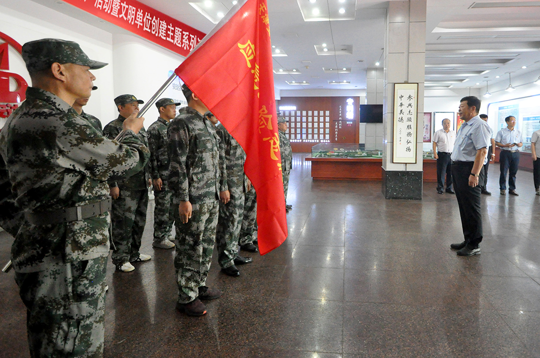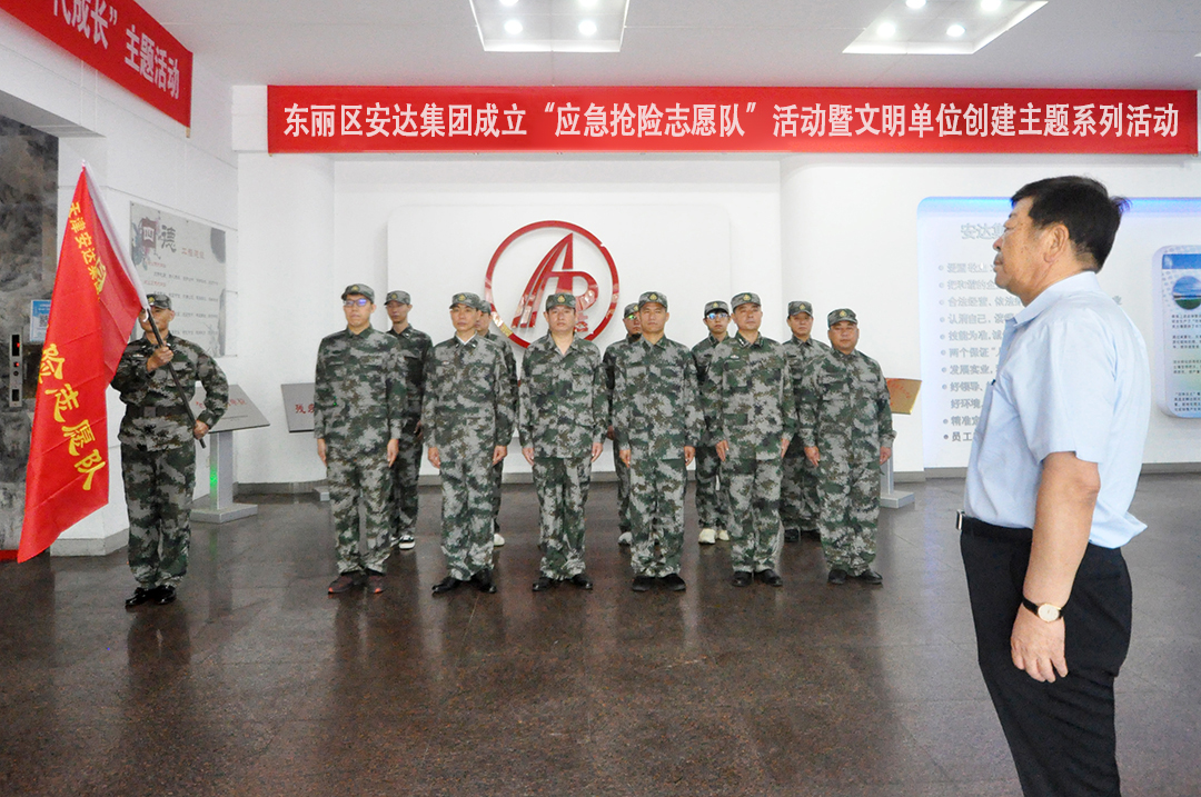 XK(中国)一站式服务平台集团党委书记、董事长崔洪金作为应急抢险志愿队的总指挥,亲自将队旗授予应急抢险志愿队队长有波同志手中。仪式上,友波队长代表全队向崔洪金总指挥承诺:志愿队35名队员将不断提高自身快速反应能力、应急处置能力和综合协调作战能力,时刻准备着在险情出现时贡献力量,争做一只闻令而动,听令而行的优秀队伍。