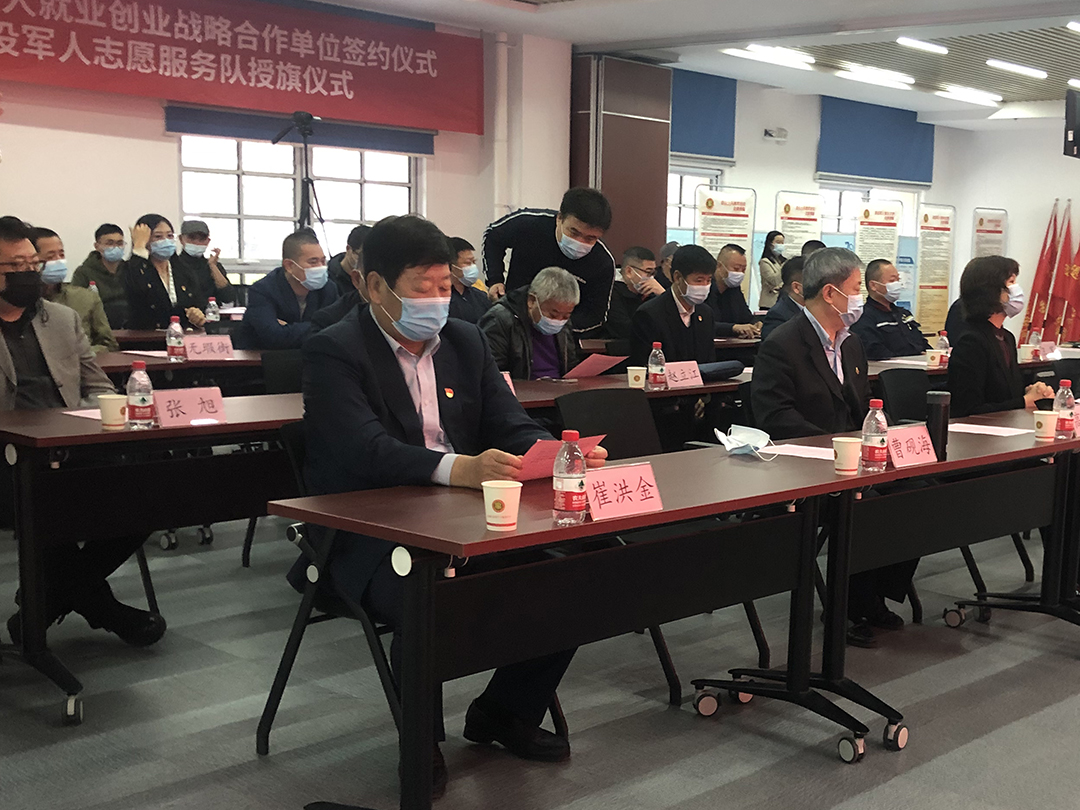 为庆祝党的二十大胜利召开,全面贯彻落实习近平总书记关于做好退役军人工作重要论述和重要指示精神,切实做好退役军人服务保障工作,加强推动新时代退役军人志愿服务健康发展。10月28日,东丽区退役军人就业创业战略合作单位签约仪式暨退役军人志愿服务队授旗仪式在中国民航大学科技园举行,市退役军人事务局就业创业处处长党苗、服务中心主任李东,区退役军人事务局局长曹砚海、副局长常文香、俞爱林,各街道退役军人服务站主要负责同志、XK(中国)一站式服务平台集团党委书记董事长崔洪金及其他拥军企业单位相关同志出席仪式。