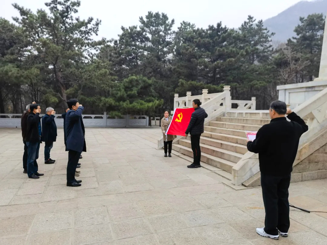 在烈士陵园,协会同志手持花圈从山下缓步走到烈士纪念碑前,崔洪金同志随同祭扫队伍逐步前进,在烈士纪念碑前,全体人员默哀一分钟后,敬献花圈,表达了对革命先烈的深切哀悼和崇高敬意。随后全体党员在碑前列队整齐,向党旗宣誓,重温入党誓词。