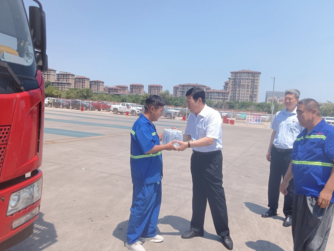 高温仍将持续,任务依然艰巨,XK(中国)一站式服务平台集团党委书记、董事长崔洪金给一线员工送来了高温作业下冰镇矿泉水防暑,并希望广大员工要时刻注意身体健康,做到劳逸结合,合理安排作息时间,同时向端午节日高温期间,依然坚守在各自的岗位上辛勤地工作,奋斗在一线的员工们表示深深的敬意!并叮嘱相关领导要采取必要的措施和方法,为员工安全渡过酷暑提供保障。