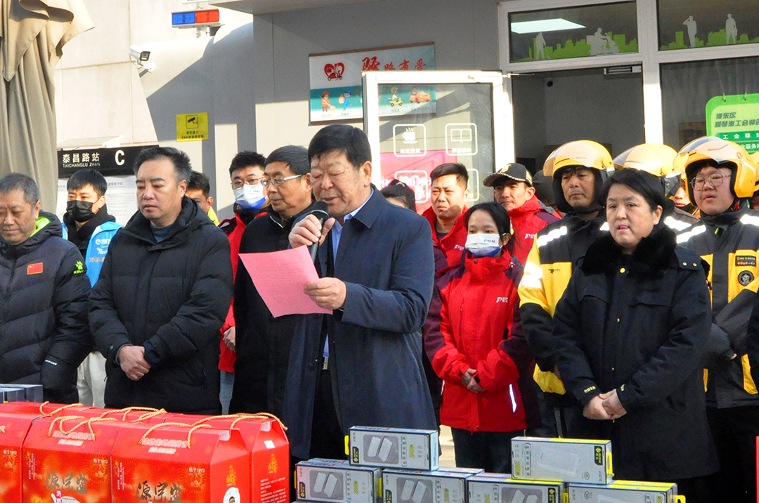 近日,一场爱意满满的 “迎春送温暖 情满元宵节” 慰问活动在河东区爱琴海广场温馨举行。此次活动由天津现代物流协会即时物流与低速交通分会牵头,联合河东区 “小个专” 综合党委、外卖快递行业党委以及河东区人民政府上杭路街道办事处等相关单位共同开展,旨在为春节期间坚守岗位的网约配送员送上温暖与关怀,做好新就业群体的思想引导与凝聚服务工作。